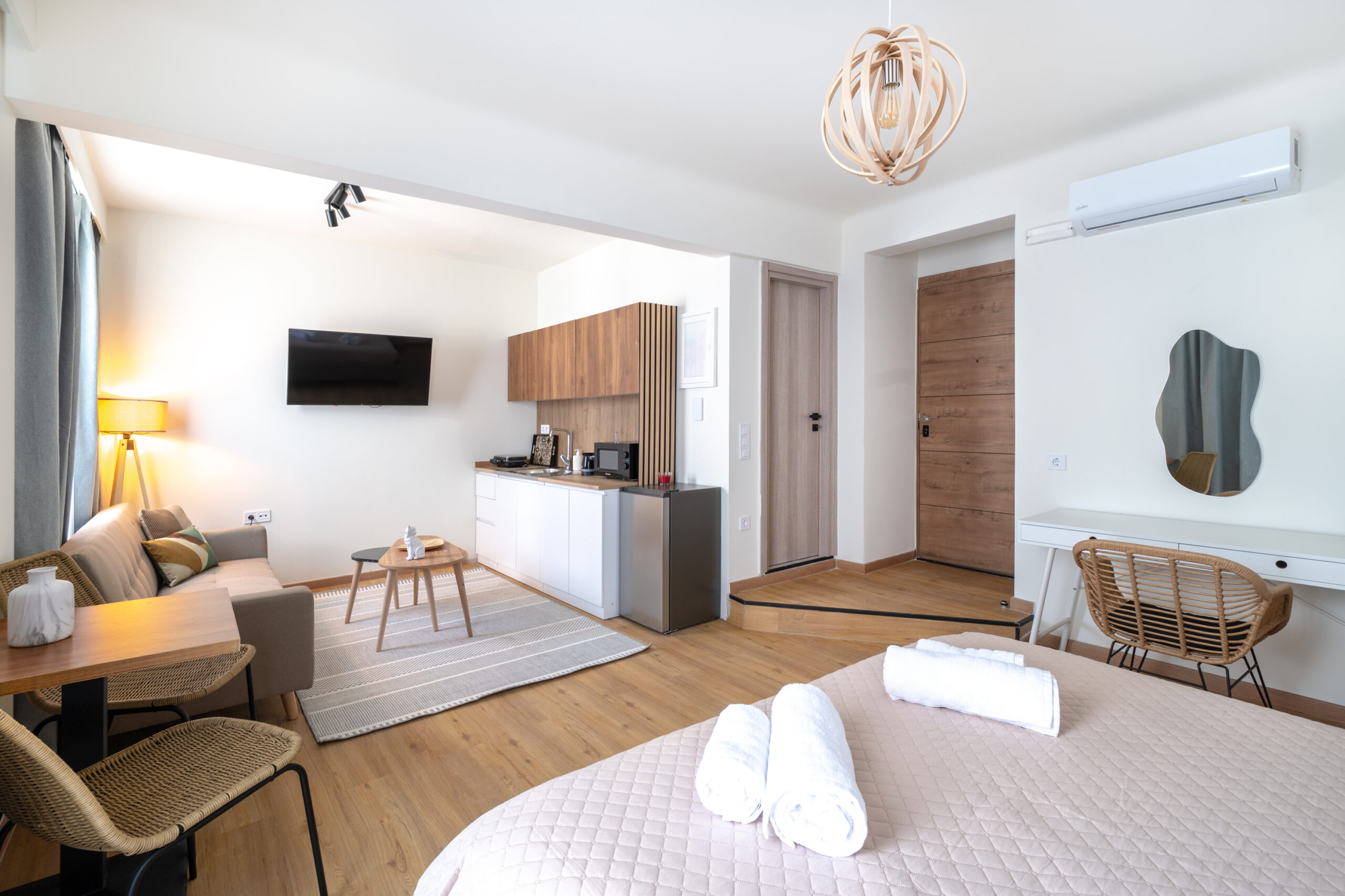 Stay in the heart of Athens at Niki Athens Suites – Urban Suite at Historical Centre Monastiraki – 402, where modern comfort meets timeless history. This recently renovated apartment offers a stylish and relaxing retreat just a 7-minute walk from Monastiraki Square. Enjoy free WiFi, air-conditioning, a fully equipped kitchen, elegant parquet floors, and a cozy living area with a sofa bed and dining space — perfect for couples, families, or business travelers.