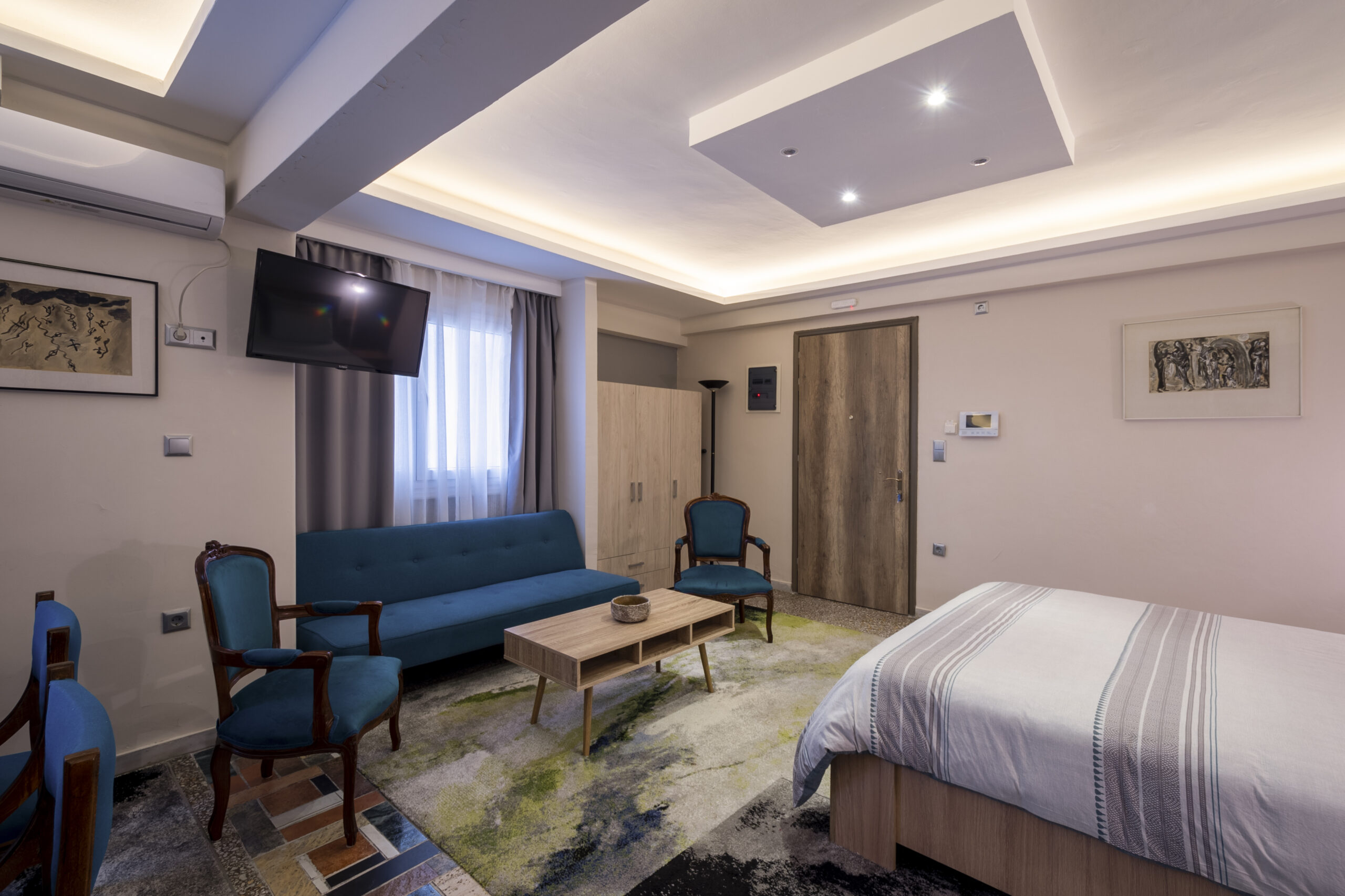 - Bed Type: Queen Bed, Double Sofa bed